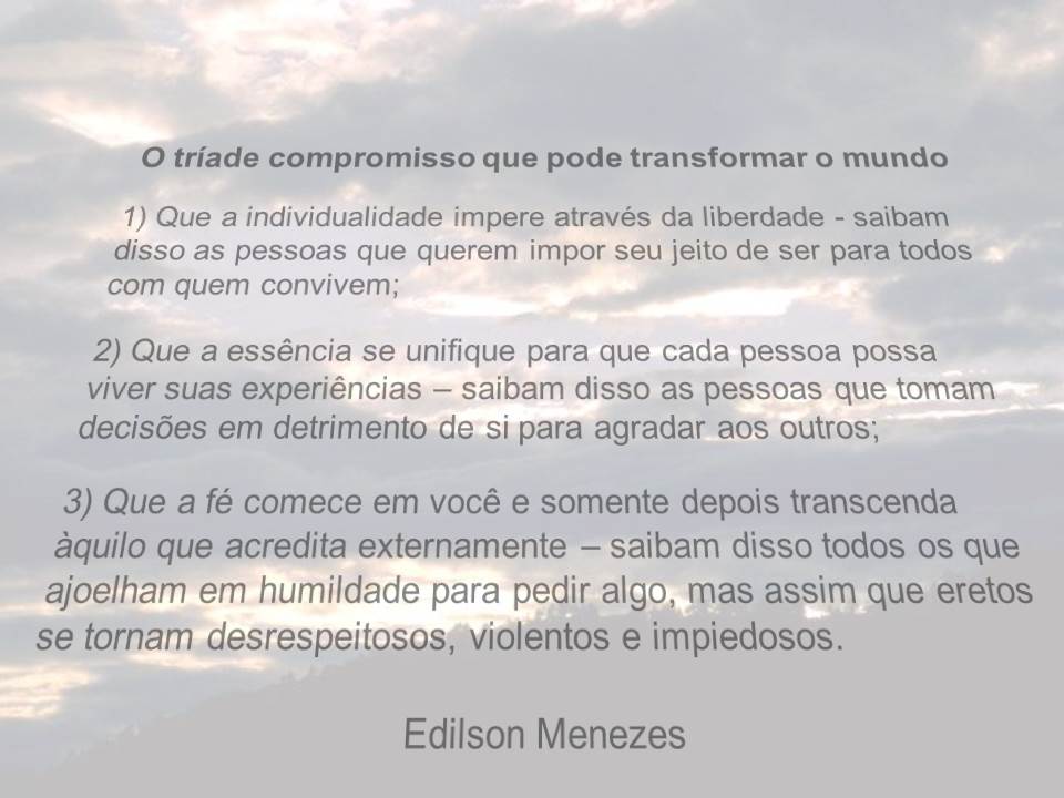 02/01/2013 13:11Este espaço foi criado para presentear a sociedade com textos do articulista Edilson Menezes e seus convidados especiais. O objetivo é contribuir para com a vida das pessoas através de uma das mais ricas ferramentas do planeta: A ARTE DE ESCREVER!